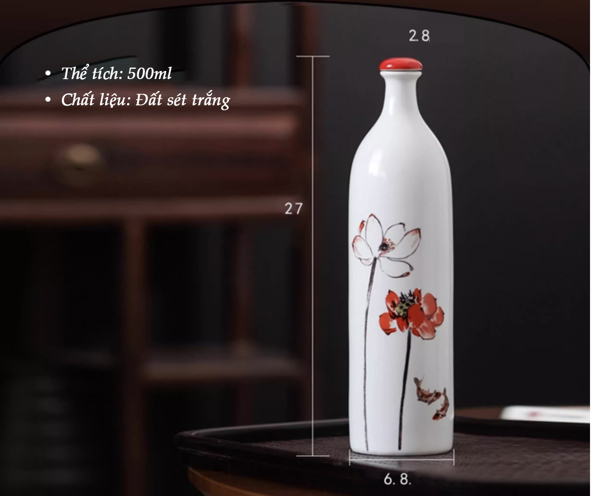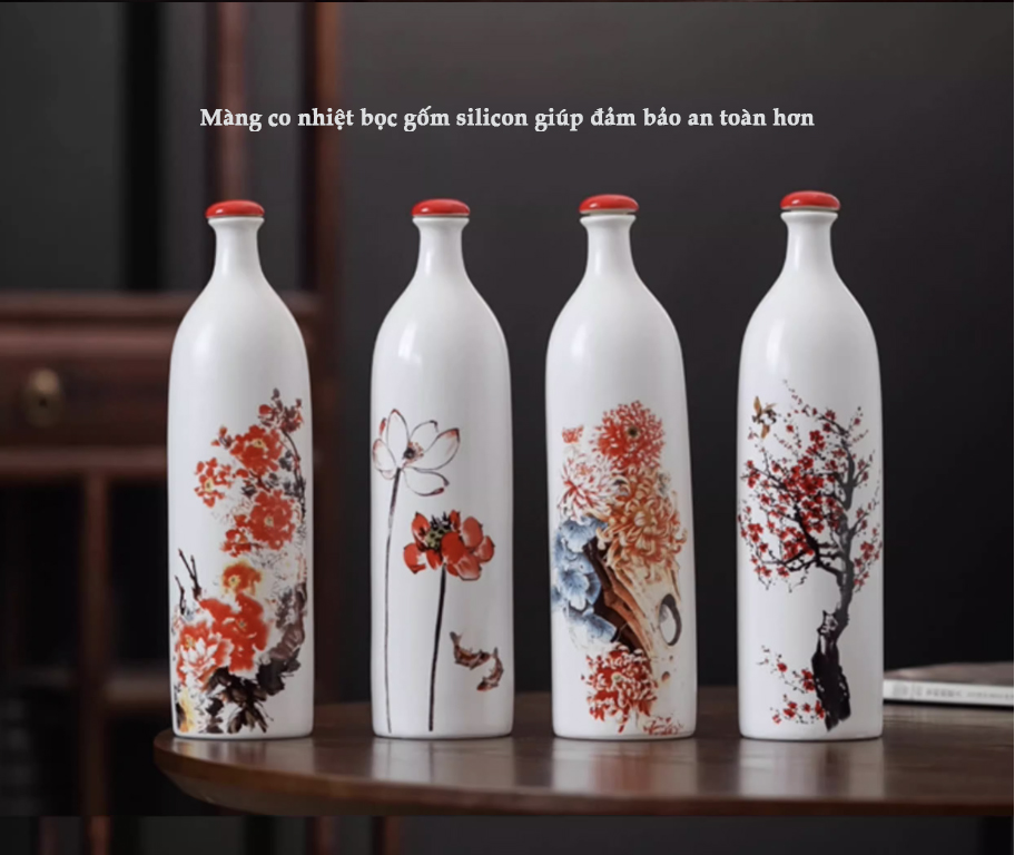 Set bình gốm hoạ tiết hoa mai